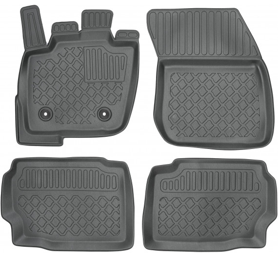 Ponúkané rohože Auto koberce so zvýšeným okrajom Ford Mondeo V 2015- sú presne navrhnuté podľa tvaru podlahy auta s prihliadnutím nielen na značku / model auta, ale aj na ročník a verziu karosérie, vďaka čomu perfektne sedia. Koberce sú vyrobené z najkvalitnejšieho, odolného a vystuženého TPE materiálu, ktorý neobsahuje škodlivé látky, čo zaisťuje bezpečné používanie. Vysoký ochranný golier (okraj) okolo rohoží a stálosť tvaru účinne zadržiavajú vodu a nečistoty, čím chránia pôvodné čalúnenie auta proti nečistotám. Bezpečné použitie vďaka praktickému a ľahko použiteľnému montážnemu systému na podlahu auta. Systém uchytenia je prispôsobený značke/modelu auta a zabraňuje pohybu rohože počas jazdy. Matný povrch a prepracovaný vzor na povrchu zaisťujú estetický vzhľad auto kobercov. U motoristov sú veľmi obľúbené vďaka skvelému pomeru ceny a kvality.